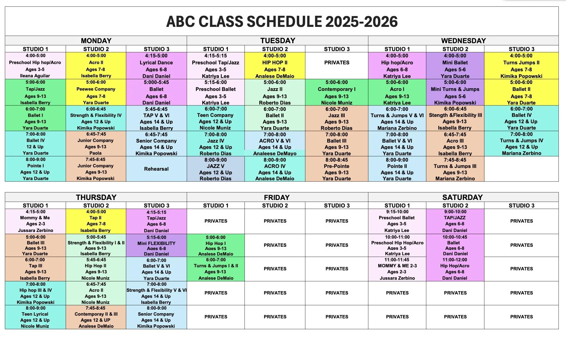 Feel free to save and print out Schedules for your reference. *Note: changes do happen and we will work diligently to stay up to date on all schedules.